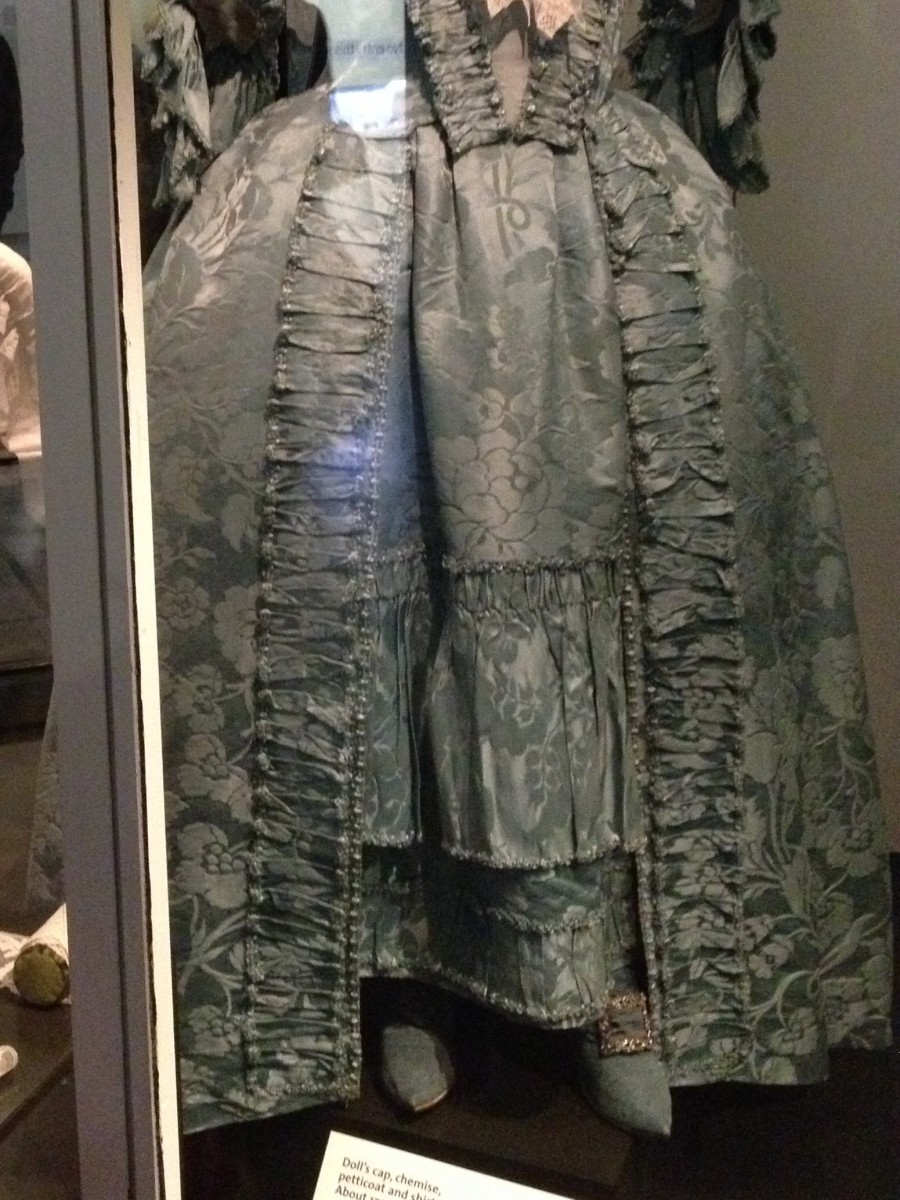 lower part of the 1760s sack-back gown of blue silk damask, trimmed with blue fly fringe January 2, 2015 900 × 1200 Period Clothing at the Victoria & Albert Museum in London lower part of the 1760s sack-back gown of blue silk damask, trimmed with blue fly fringe lower part of the 1760s sack-back gown of blue silk damask, trimmed with blue fly fringe Feel free to share: