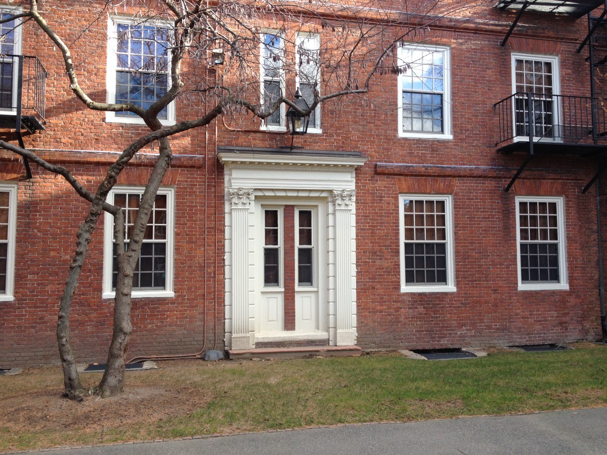 “fake doorway” of the Hollis Hall facing west January 24, 2015 1200 × 900 Self-Guided Tour of Harvard University’s Old Yard “fake doorway” of the Hollis Hall facing west The “fake doorway” of the Hollis Hall facing west. Originally the main entrance to the building was facing west. Feel free to share: